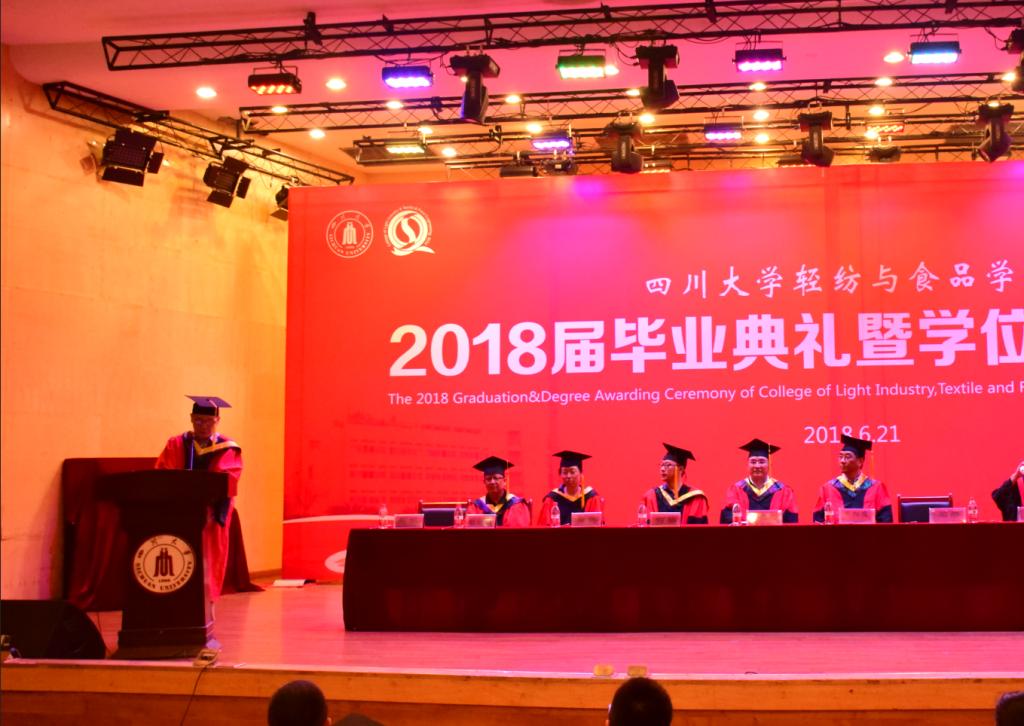 On the evening of June 21, 2018, the 2018 graduation and awarding ceremony of college of Light Industry, Textile & Food Engineering in Sichuan University was held in the concert hall on the second floor of the wenhua activity center.