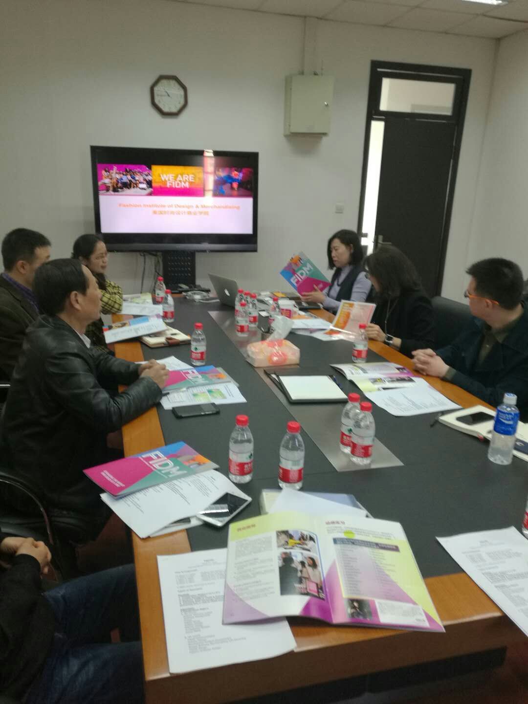 Lisa 主任介绍了美国时尚设计商业学院的概况、开设专业、与中国高校合作等情况。Kitty介绍了该学院的专业设置、学位类型、招生与就业、中国学生申请条件与程序、学费、奖学金等。我院何有节院长介绍轻纺与食品学院的基本情况、教育理念、专业设置、专业活动、对外合作等。双方就合作方式、内容、联合培养方案进行讨论,对合作关系和联合培养方案达成基本共识,并落实了推进合作工作的安排。