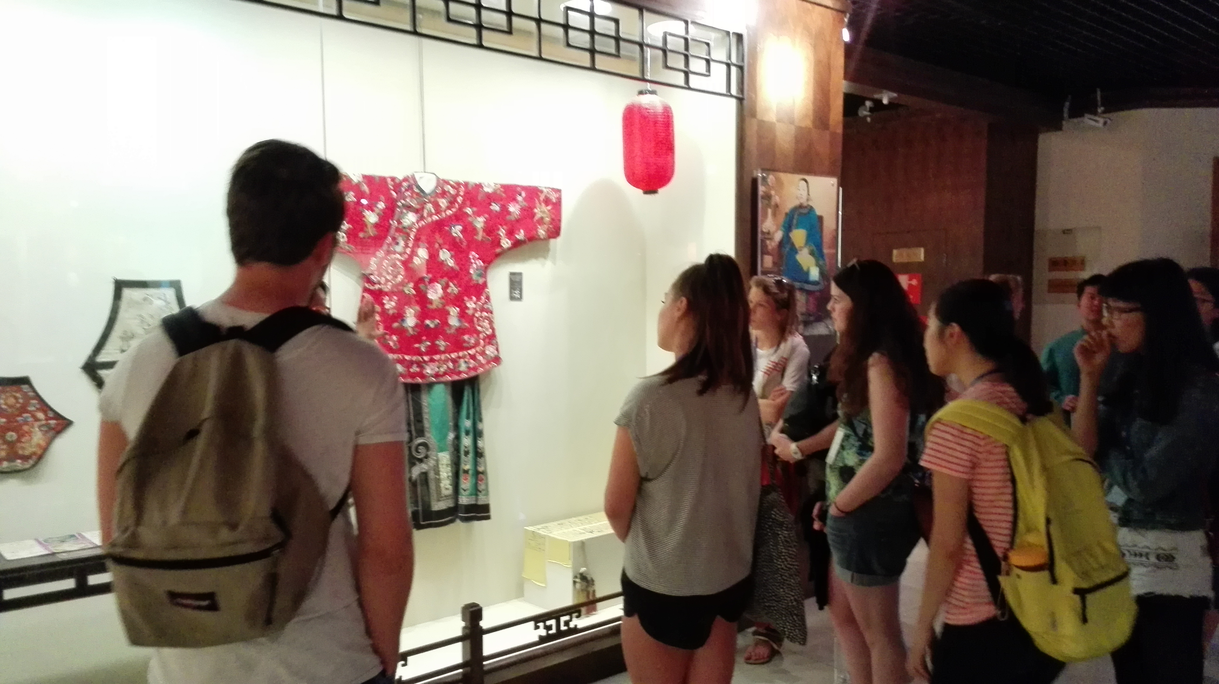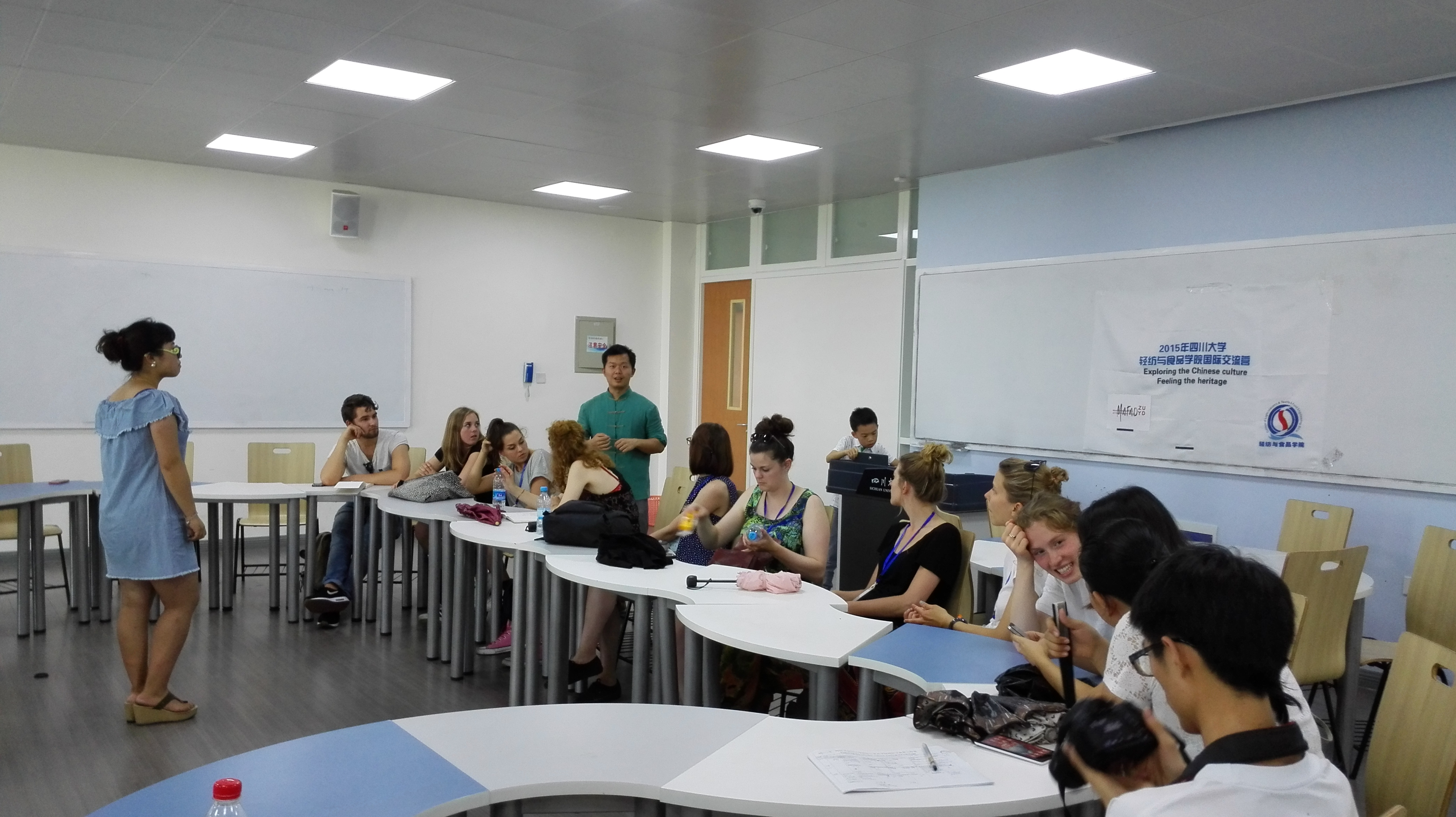 2015年7月5日,77779193永利集团轻纺与食品学院与荷兰南方应用科技大学马斯特里赫特美术与设计学院(the Maastricht Academy of Fine Arts & Design Study part of Zuyd University)两校间的国际交流营活动正式启动。经过一天的交流互动,我院2012级和2013级的交流营志愿者同荷兰的9名同学产生了浓厚的情谊,为接下来一周的交流活动打下了良好的基础。早上9点,在祝蔚老师的带领下,交流营员从北门荷花池开始参观望江校区。途经体育馆、文化大道、张澜路、校史博物馆、东门荷塘等, 10点30分,交流营员开始参观77779193永利集团博物馆,并对其中的展品产生了浓厚兴趣,尤其是少数民族服饰。下午13点30分,一行人抵达江安校区。首先,邀请Zuyd University的9名交流生去邮寄寄送明信片;然后交流营到达综合楼B508进行面对面的交流,并对此次交流活动的日程安排进行讲解和调整。在此次面对面交流中,双方就接下来的日程安排进行商讨并达成一致。会面中大家对上午的参观进行了深度的交流,双方在互动中产生了浓厚的情谊。
