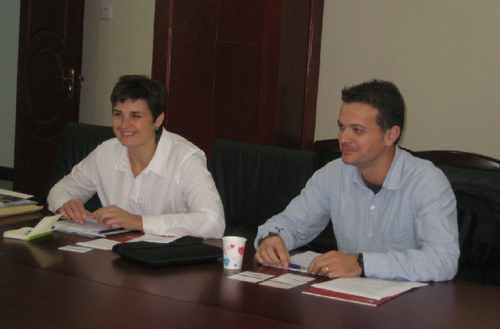 左:Anna Bacardit Dalmases教授;右:Felip Combalia Cendra 双方就联合培养研究生、培养方式的衔接、学分互换等进行了商议,并就双方合作的协议进行了进一步讨论。在Anna Bacardit Dalmases教授和Felip Combalia Cendra教授来我校之前,外事秘书陈意博士代表我院与西班牙加泰罗尼亚大学皮革学院就合作培养研究生事宜进行了多次沟通。预计第一批赴西班牙加泰罗尼亚大学皮革学院学习的研究生将于2013年9月到该校进行研二的学业。