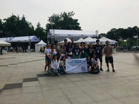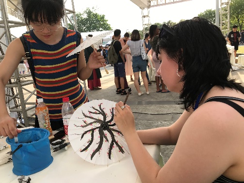 开幕式活动从下午开始预热,轻工科学与工程学院的志愿者同学们带领来自东西伯利亚国立科技与管理大学和英国伯明翰城市大学的留学生参与了体育馆外“国际课程周”的创新创业展和互动体验活动,并介绍了川大的特色、历史以及四川的本地的风俗和文化。