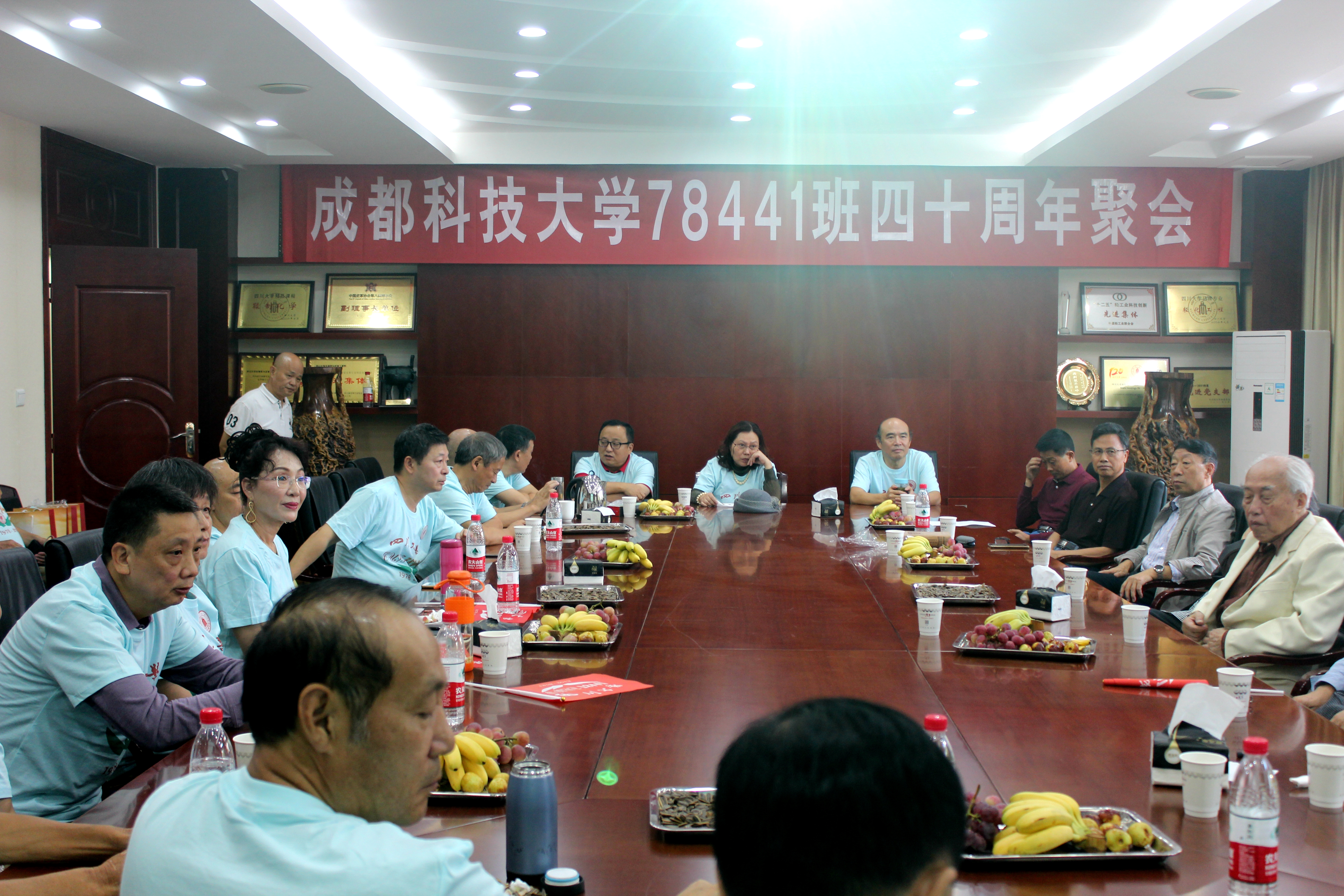 在母校122周年校庆之际,成都科技大学78441班同学举行入学四十周年荣归母校活动。2018年9月29日上午,班级30余人在皮革楼209会议室欢聚一堂,共同回忆大学时光和同学情谊。出席活动的有中国工程院院士石碧教授(78441班同学)、退休教师张扬教授、陈彦教授(78441班同学)、王坤余教授、傅师申教授、杨淑娟老师、轻纺与食品学院原院长廖隆理教授、原院长陈武勇教授以及轻纺与食品学院刘晓虎书记、何有节院长、生物质与皮革工程系主任林炜教授、张廷有教授、张宗才教授(78441班同学)师等。本次活动由78441班原班长陈彦和李元庆同学主持。