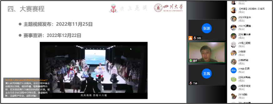 为进一步推广新锐设计师的创意思考和设计表达,探索创意设计发展的新趋势,培养和锻炼同学们的创新意识和实践能力,更好地了解“衣秀杯服装设计大赛”相关事宜,12月22日晚,服装与服饰设计系通过腾讯线上会议开展了赛事宣讲活动。服装与服饰设计专业各年级班主任及百余名师生参加活动,孟虎、王巍两位老师先后进行了新一届赛程解读,第十七届衣秀杯服装设计大赛学生导演张源同学主持活动。