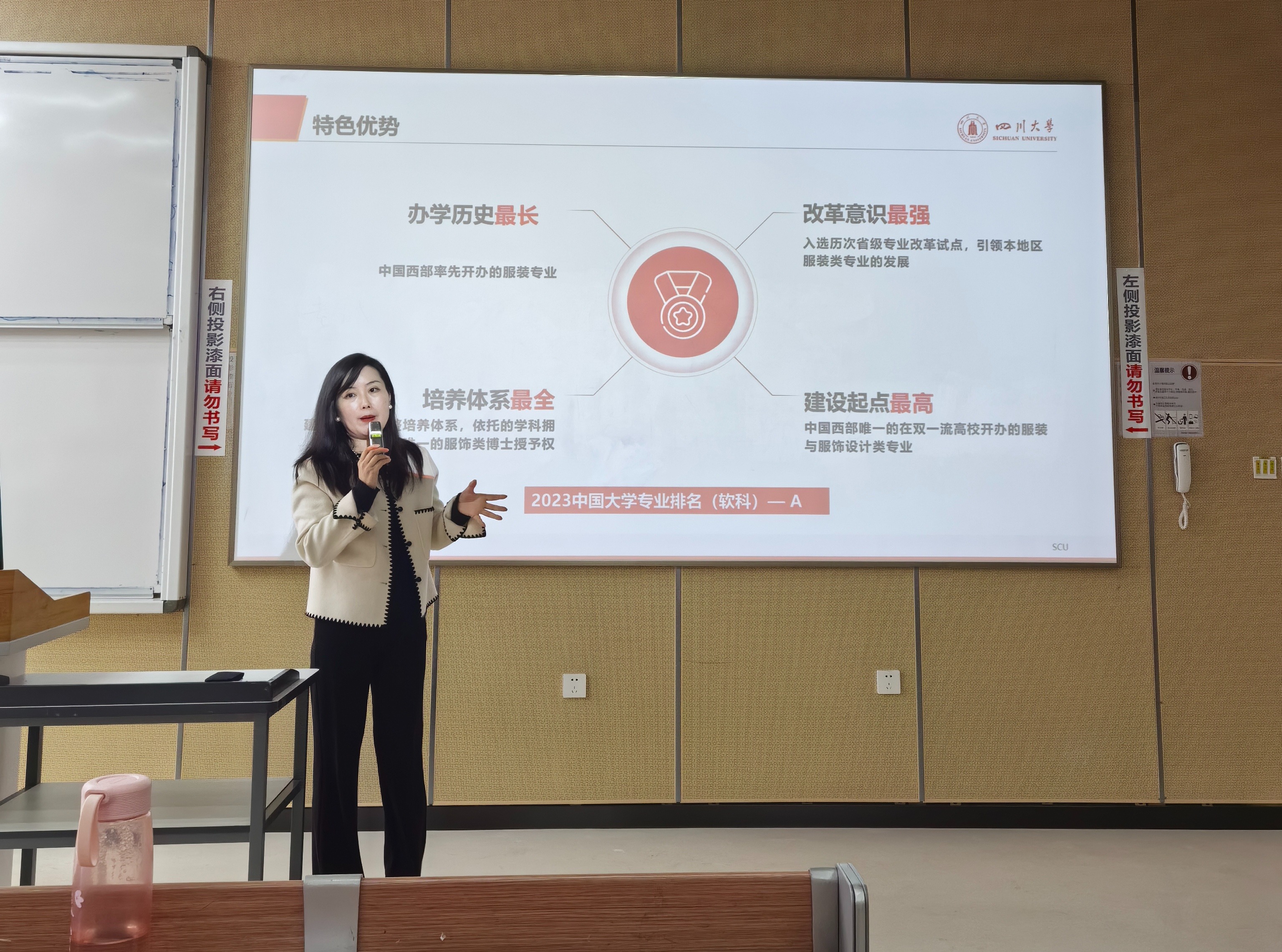 2024年4月7日下午,我院服装与服饰设计专业在江安校区综合楼C座305举行了2024年专业宣传会。参加本次宣传会的有学院党委副书记冯国涛副教授、服装与服饰设计系主任杨璐铭教授、服装与服饰设计系副系主任申鸿副教授、服装与服饰设计系教研室主任刘健西老师及2023级班主任姚云鹤老师。会议由副系主任申鸿副教授主持。