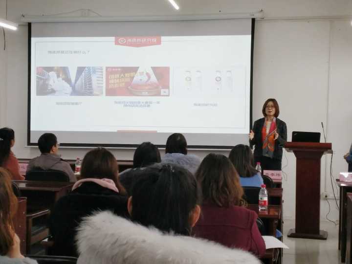 宣讲会开始后,轻纺与食品学院党委副书记冯国涛老师致辞。冯国涛副书记首先对海底捞公司对我校食品专业人才表示感谢,对王总专程到我校进行宣讲表示欢迎。同时,冯书记提出了此次比赛的目的,即“以赛促创、以赛促研、以赛促践”,并且强调到,本次比赛需重视理论和实践、传统和创新、创新和市场的结合。紧接着,海底捞研究院运营总监王倩从“海底捞最近在做什么?”引入话题,详细介绍了此次比赛的信息以及开发以牛肚底板为原材料的食品的难点,也强调了本次比赛的理念,即“健康、环保、创新”。在提问环节中,同学们提出了自己关心的问题,王倩总监耐心解答,食品工程系系主任吕远平教授也为大家展示了牛肚底板,加强同学们对牛肚底板的了解。