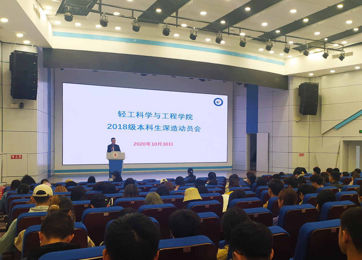 为切实推进我院本科生深造能力提升,动员2018级本科生做好深造计划,并为学院下一步加强精准深造指导奠定基础,我院于2020年10月30日下午在望江校区东三教演播厅举行了2018级本科生深造动员大会。轻工科学与工程学院党委冯国涛副书记、副院长彭必雨教授,2018级本科生辅导员杨维老师以及2018级全体学生参加了此次动员大会,动员大会由杨维老师主持。