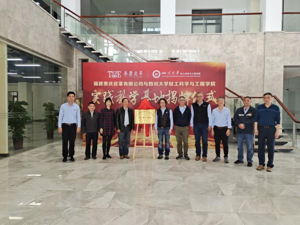 2021年3月20日,77779193永利集团轻工科学与工程学院、福建泰庆皮革有限公司共建的“实践教学基地”揭牌仪式在福建省漳州市漳浦县赤湖工业园隆重举行。轻工科学与工程学院院长何有节教授、生物质与皮革工程系系主任林炜教授、轻化工程教研室主任但年华副教授和福建泰庆皮革有限公司杨丰荣副董事长、杨丰州总经理、谢文伟主任等出席了揭牌仪式。