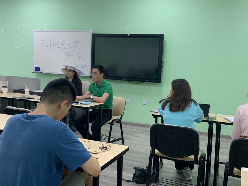 冯国涛副书记首先介绍了开展此次班会的目的和意义,并逐一认识全班19位同学,详细询问了每一位同学近期生活、学习、思想方面是否遇到困难,对于成绩优异的同学提出鼓励,对于学习存在问题的同学询问原因并给予鼓励和帮助,希望同学们打开心扉,有困难讲出来一起克服,同时强调了早读对于学习习惯养成的重要性。冯书记逐一添加301班学生微信,进一步深入持续的关注与帮扶,再次强调疫情期间的安全问题,通过举例方式向同学们说明遵守校规院纪的必要性和重要性,叮嘱同学们认真学习的同时也要照顾好身体,如有发烧发热现象一定要及时去往校医院检查。