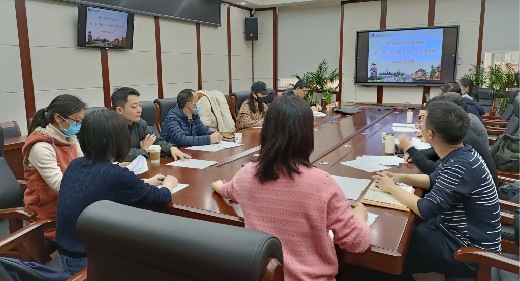 2022年2月28日下午,轻工科学与工程学院第三届“探究式-小班化”教学竞赛在望江校区纺工附楼205会议室举行。本次竞赛主题为“卓越学术强化教学、春风化雨创新育人”,旨在深度践行“以学为中心”的教学改革,以“信息+”助力的教育教学创新,进一步深化“探究式-小班化”教学改革,实现教书育人并重,促进本科教学水平提升,同时为“第二届四川省教师教学创新大赛”“第六届四川省青年教师教学竞赛”和学校第五届“探究式-小班化”教学竞赛选拔参赛人员。
