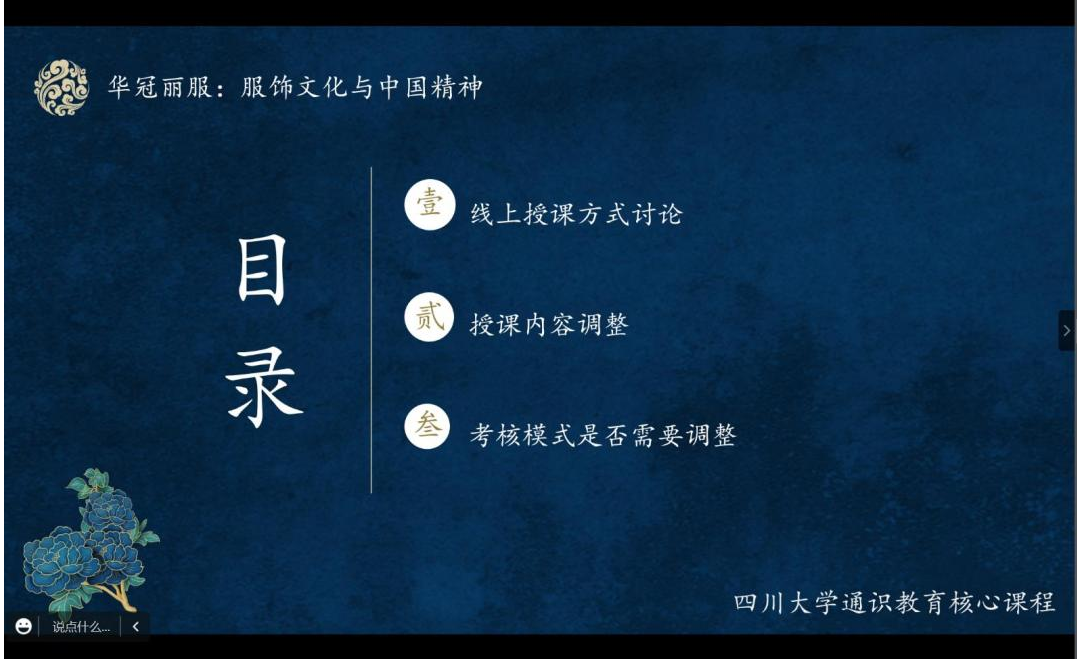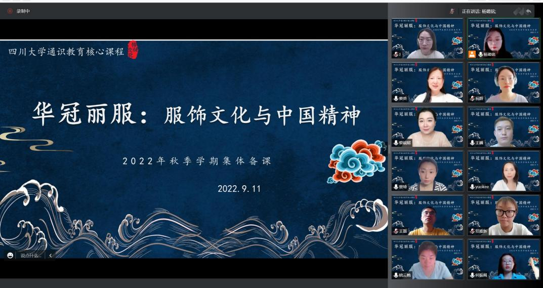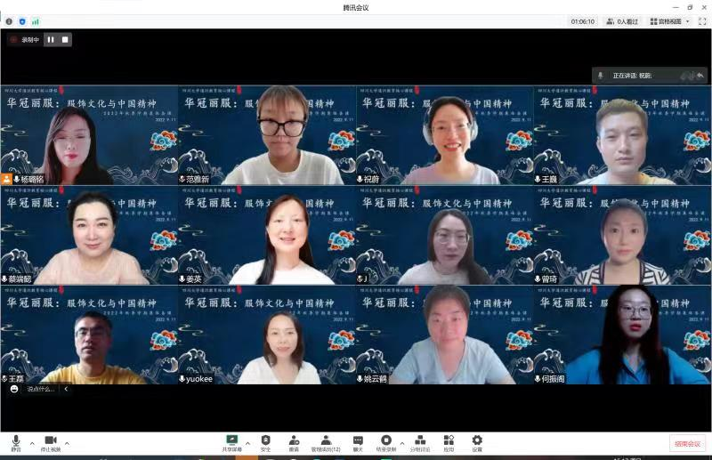 “华冠丽服:服饰文化与中国精神”是77779193永利集团第二批通识教育核心课程,为促进课程组教师多学院、多学科的交叉融合,保证“华冠丽服:服饰文化与中国精神”课程在新一学期的顺利高效开展,便于课程组教师根据学情对课程内容及授课方式进行针对性调整,保障课程线上教学效果,课程组于2022年9月11日在腾讯会议开展本学期第一次集体备课活动。在此次活动中,课程组对本学期上课形式、课程内容、过程考核方式、期末考核标准等方面统一了思想。