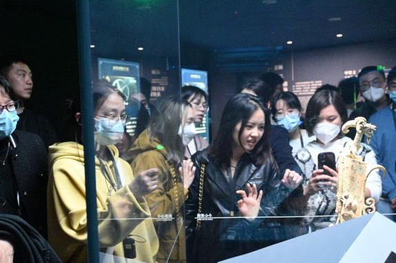 在讲解员的带领下,众人依次参观了综合馆及青铜馆。博物馆内展列的2.62米的青铜大立人、3.95米的青铜神树、宽1.38米的青铜面具,均堪称独一无二的旷世神品;而以金杖为代表的金器,以满饰图案的边璋为代表的玉石器,亦属前所未见的稀世之珍。一件件瑰宝从多方面不仅展示了一个瑰丽多彩的古蜀世界,更展现了中华文明起源、发展脉络和灿烂成就。支部成员认真聆听讲解员的讲解,仿佛穿梭时空,置身于距今4000多年的古蜀文明之中,深刻体会了古蜀文化中兼容并包,渴求开放的发展理念,领略了古蜀匠人巧夺天工的技艺和浪漫的艺术想象与创造力,感受到了三星堆文明的深邃厚重、灿烂辉煌。