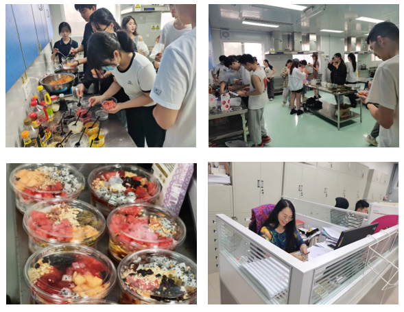 在煮粽子的间隙,支部成员同时进行了冰粉DIY制作活动。在听完工作人员对冰粉发展史的介绍后,支部成员积极参与到冰粉制作过程中,有人喜欢加酿果酱的冰粉,有人钟情于纯红糖冰粉。随后,支部成员兵分多路,拿着新鲜出炉的冰粉出门送清凉,在炎热的夏天为老师和同学带来一丝清凉。