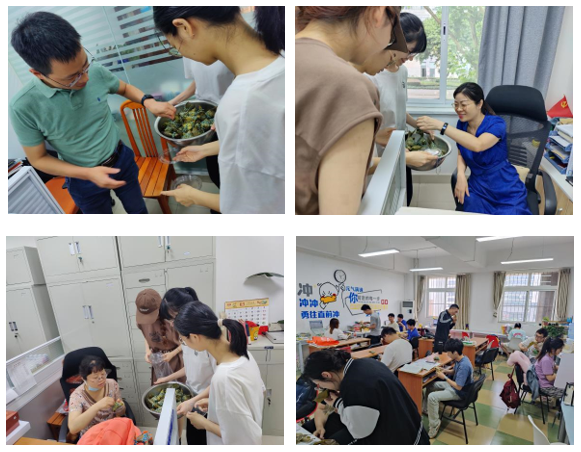 在欢声笑语中,新鲜的粽子也陆续出锅,支部成员邀请老师和同学们共享劳动成果,传递端午浓情。活动结束后,大家合影留念,自发组织卫生大扫除。