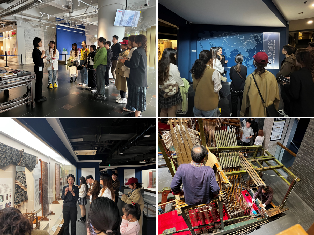 第二日,党员代表前往位于成都市青羊区蜀锦织绣博物馆参观学习成都蜀锦织绣博物馆位于浣花溪旁,它是全国唯一拥有全套蜀锦手工艺的场馆,前身是拥有半个多世纪历史的成都蜀锦厂。在展馆讲解员的解说下,党员们基本了解到蜀锦蜀绣的历史发展以及在古代丝绸之路中的重要作用。展馆包括丝绸起源、历代蜀锦、刺绣历史、织机沿革、明清服饰、蜀锦技艺六大部分,藏品不止有蜀锦、刺绣,还有其适应现代发展的产物——旗袍,以及它们的相关制作工艺和发展历程,这为服装专业的同学提供了设计素材和灵感来源,使得大家收获良多。其中,还观看了非遗传承人的蜀锦织机表演,织造中两位匠人上下通力合作,一人拉绳控制提花,一人传经打纬操作木织机,一会便在生产出花纹精美的锦缎,这一。在时代浪潮的冲刷下,成都蜀锦织绣博物馆作为蜀锦蜀绣非物质文化遗产的代表,它彰显出了其顽强的生命力,承担起了传播中华文化、弘扬民族自信的重任。