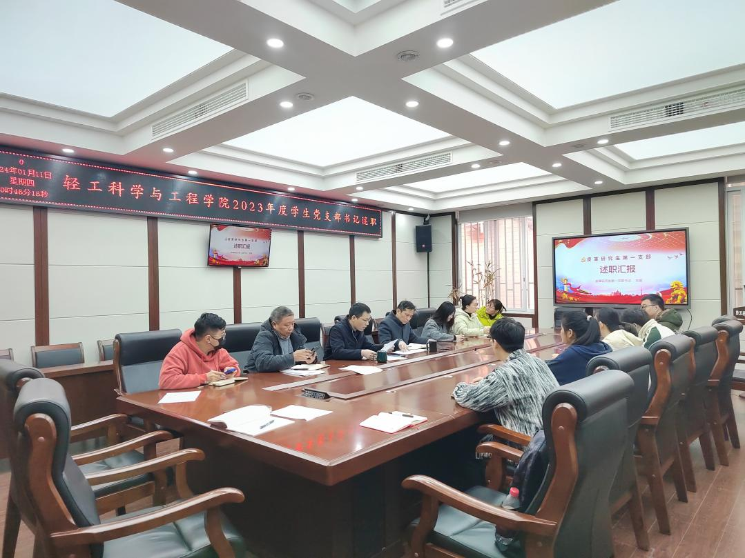 紧接着,冯国涛副书记对12个党支部工作开展情况进行点评。冯书记首先肯定了党支部在常规工作中取得的成效,尤其肯定了党支部特色工作开展,如皮革第一党支部的“一二三四”支部工作法的创建执行并取得一定成效,纺织服装第一党支部连续几年与离退休党支部联建共建汲取奋进力量等。冯书记希望通过本次党建述职交流,院内党支部在2024年工作开展上继续提高工作标准、持续增加鲜明特色、不断挖掘工作亮点,让学院党建工作更上一层楼,在全校树立一张有轻工特色的靓丽名片。同时,冯书记也对下一步学院党支部工作提出了紧紧围绕学校“三个一流”,聚焦“两个作用”与“三个职责”的工作要求,聚焦党支部战斗堡垒作用与党员先锋模范作用的发挥,聚焦党员发展教育管理监督、支部标准化规范化建设与特色活动开展的主要职责,扎实开展学院学生党建工作。