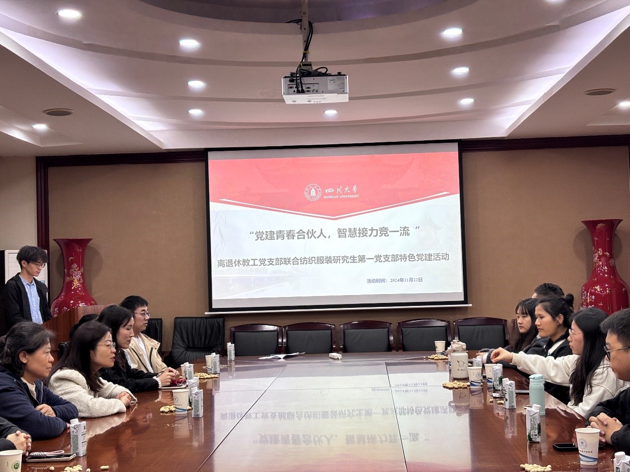 2024年11月22日,离退休教工党支部与纺织服装研究生第一党支部在皮革楼209会议室联合举办了“党建青春合伙人,智慧接力竞一流”主题党日活动。