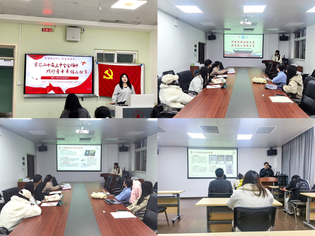 宣讲活动由轻工科学与工程学院分团的许艺泷、刘和峻、郭文杰、王妍妍、黄思颖等多名同学担任主讲人,聚焦《中共中央关于进一步全面深化改革 推进中国式现代化的决定》中的“构建支持全面创新体制机制”,结合轻工科学与工程学院的轻化工程、生物工程、食品工程、服装与服饰设计专业特色,就“轻工业领域如何推动科学技术创新、促进产业升级、发展新质生产力”这一问题进行了深入解读。主讲人首先对二十届三中全会精神和构建支持全面创新体制机制的重要意义、内在要求与重点任务进行了详细阐述,紧接着围绕“新质轻工”和“科技创新”,与各党支部同志深入探讨未来的皮革新产业、新型生物质领域、新型酿造食品业、未来的创新纺织技术等热点话题,最后希望党支部的各位同志都能在“构建支持全面创新体制机制”驱动下,勇担科创使命,构筑新质轻工,奋力谱写中国式现代化轻工业新篇章。