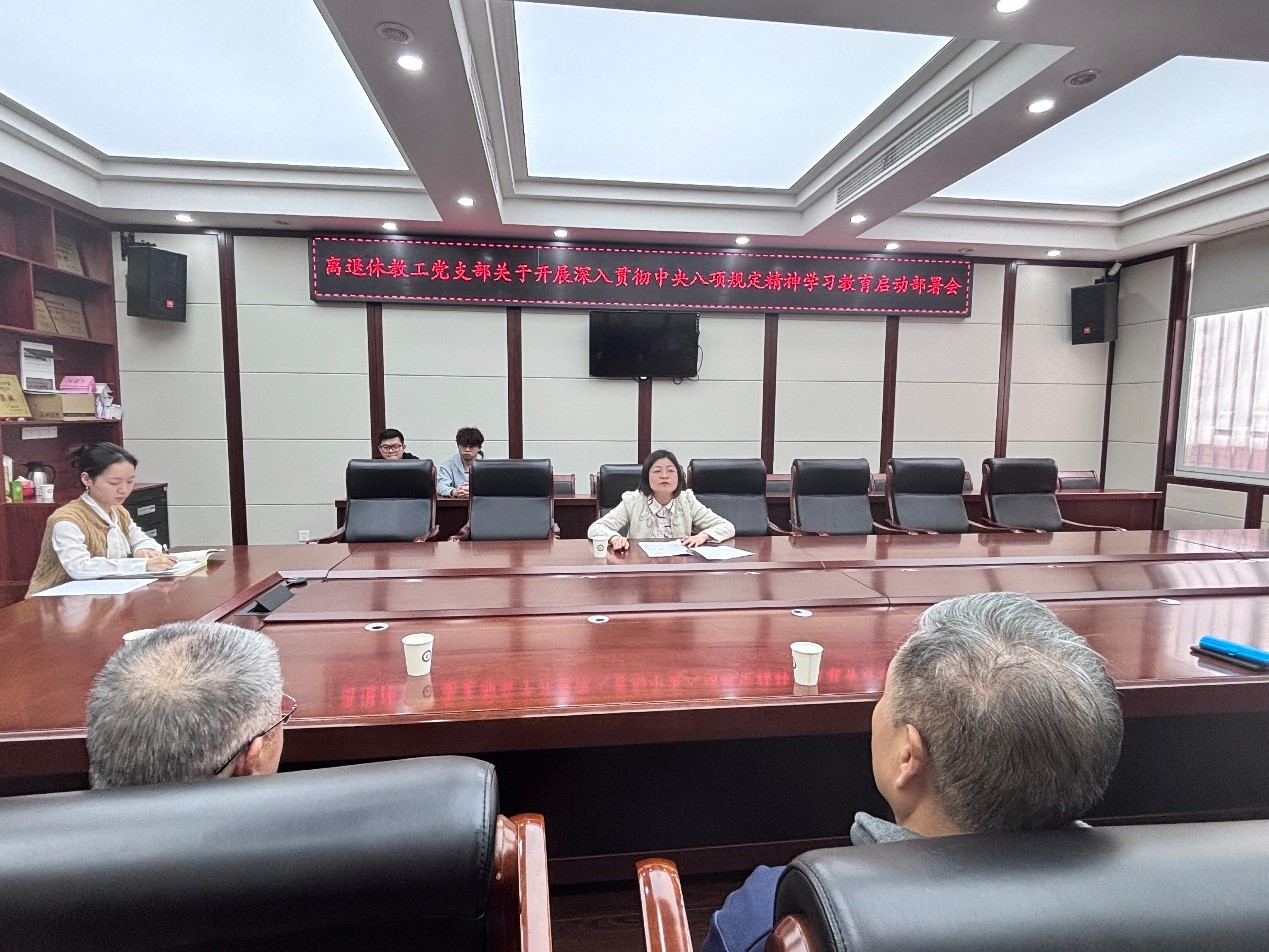 根据校院工作安排,2025年3月24日下午,离退休教工党支部在纺工附楼205,召开关于深入贯彻中央八项规定精神学习教育启动部署会,党支部书记李慧主持会议。