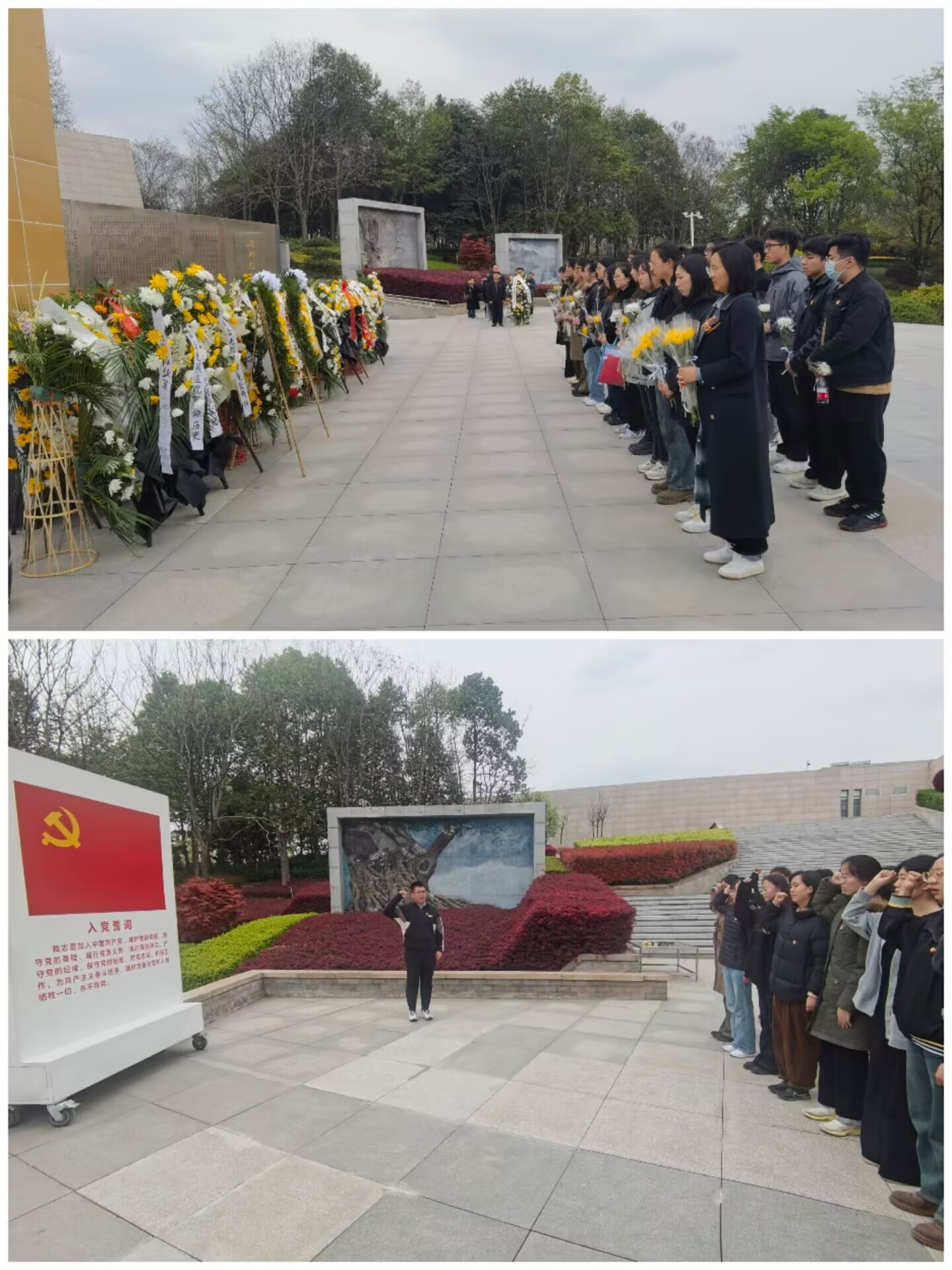 支部成员深情默哀英烈(上)与庄严重温入党誓词(下)