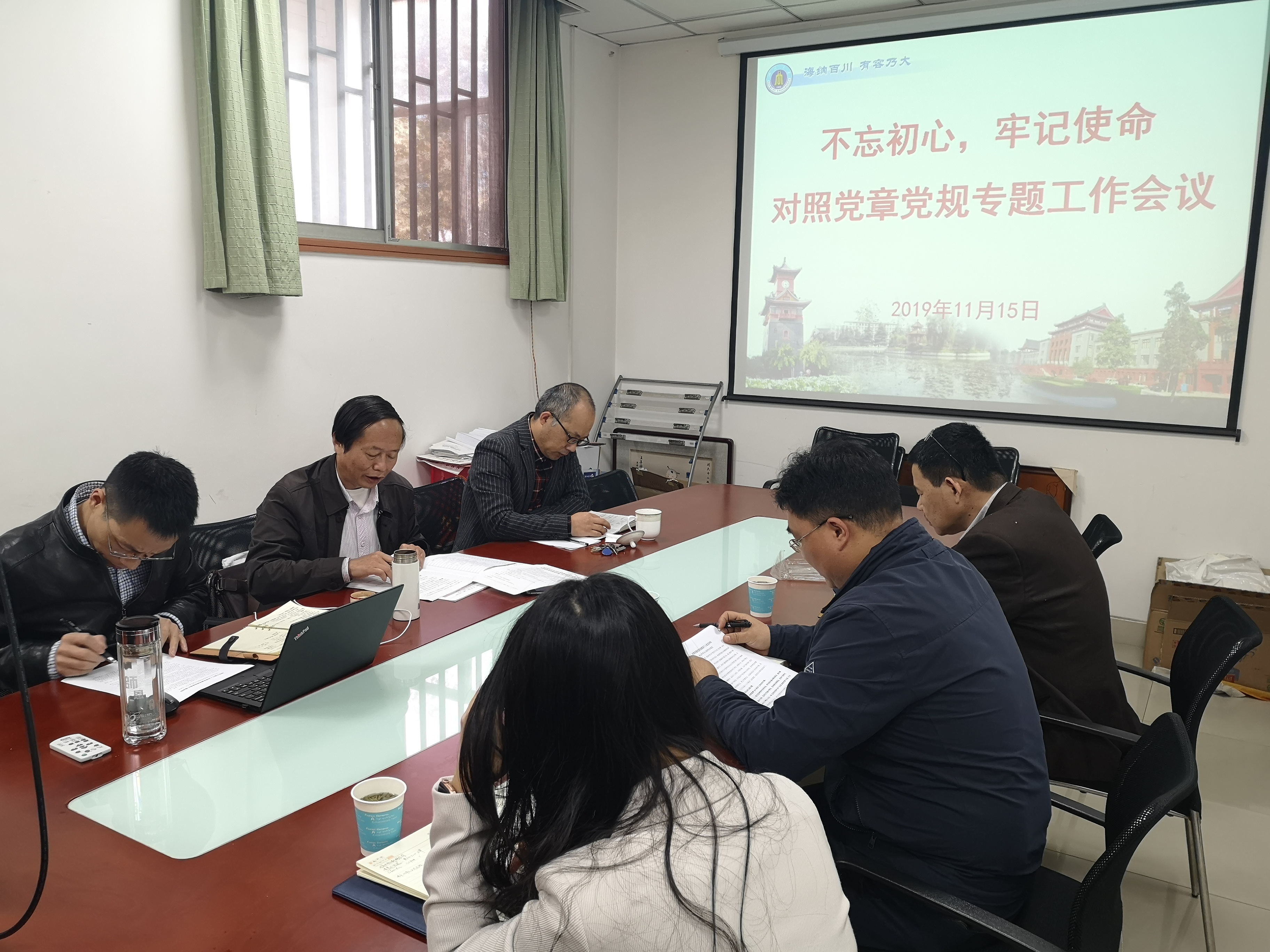 2019年11月15日上午,学院领导班子在纺工附楼201会议室,召开“不忘初心、牢记使命”主题教育对照党章党规找差距专题组织生活会。学校第五指导组成员、人事处蒋莉华副处长参加本次专题会议并指导工作。