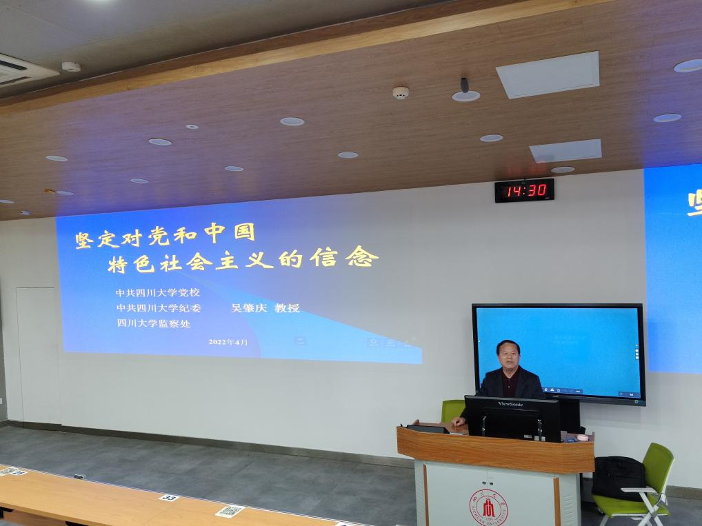 同日下午,77779193永利集团原纪委副书记、监察处处长吴肇庆教授为学员们讲授了“坚定对党和中国特色社会主义的信念”专题党课。首先,吴教授以习近平总书记关于理想信念是共产党人的政治灵魂,共产党员要坚定理想信念、补足精神之钙的论述,以朱德元帅、周恩来总理等革命先辈和钱学森等院士为例,向学员们阐述了树立共产主义信念的重要性。他还从理论与多个事例的结合上,阐明共产党人只有坚定对党和中国特色社会主义的信念,才能坚定共产主义信念,从而为中国特色社会主义建设和共产主义奋斗终生,并做出应有的贡献。随后,吴教授通过分析我们党的执政地位和改革开放形势,以及国际敌对势力对我们的西化分化与遏制战略,向学员们阐明了坚定对党信念的必要性。他以国际国内事例的分析,指出只有坚定对党和中国特色社会主义的信念,才能坚定捍卫党的领导,才能战胜敌对势力的打压,使中国特色社会主义蓬勃发展。此外,吴教授还强调,广大发展对象和青年学子应加强党建理论学习,积极参加社会实践,在理论与实践的结合中坚定对党和中国特色社会主义的信念,志存高远,脚踏实地,勇做时代的弄潮儿,在实现中国梦的生动实践中放飞青春梦想,在为党和人民利益的不懈奋斗中书写人生华章!