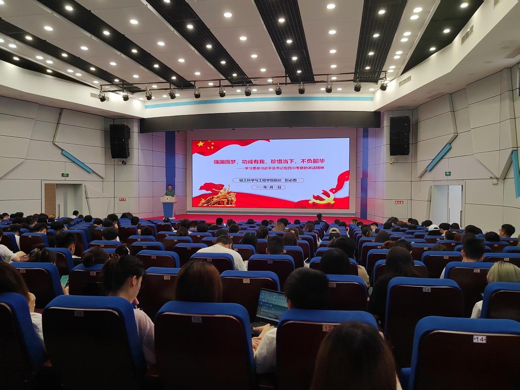 紧接着,彭必雨院长带领同学们一起回顾了党的十九大以来习近平总书记对四川两次考察的主要内容,并以“强起来”为关键词解读了习总书记今年6月的考察重点。彭院长从粮食安全保障措施要强、文化自信文化要强、科技创新科技要强、青年成长要强等四个维度,结合77779193永利集团学科发展方向、育人理念以及学院专业特色等方面,鼓励青年学子们脚踏实地,在实践中一步步成长起来、一步步强大起来。