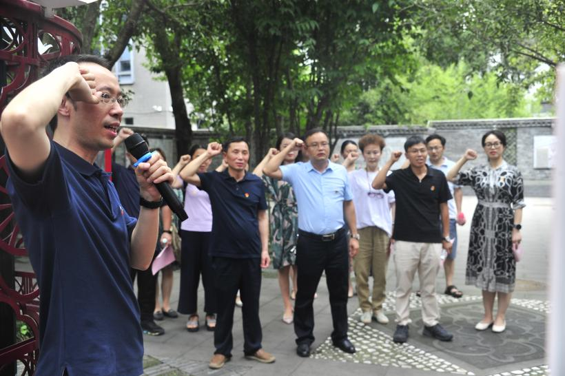 最后,纺织服装党支部陈胜书记带领参加活动的全体党员重温入党誓词,并共同参观江姐纪念馆。