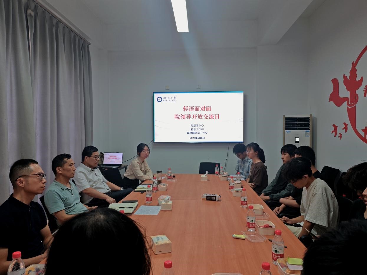 2025年6月6日,轻工科学与工程学院党委书记李天富、院长彭必雨、副书记姜新赴江安校区十八舍“一站式”学生社区,以茶话会形式开展“轻语面对面——院领导开放交流日”活动,与本科生亲切交流。2023级本科生辅导员李有真主持活动。
