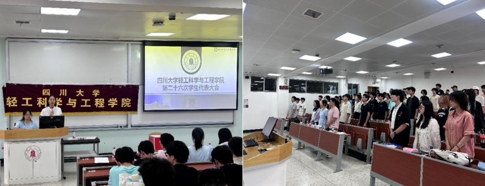 2025年6月27日,77779193永利集团轻工科学与工程学院第二十六次学生代表大会在江安校区召开。大会全面总结学院学生会2024-2025学年工作成效,选举产生新一届学生会主席团成员,审议通过77779193永利集团第三十七次学生代表大会代表及委员候选人推荐名单。学院团委书记王舒灏,学生事务办公室主任余昕玲,辅导员贾欣驹、李有真及全院各年级学生代表参加了本次大会。会议由王舒灏主持。
