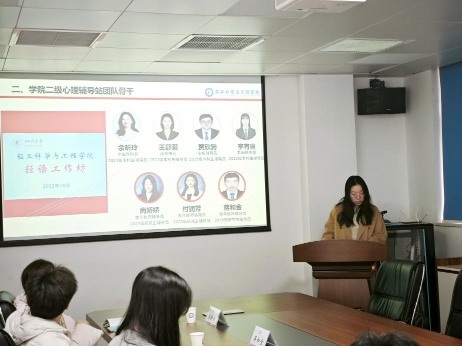 2025年12月31日,轻工科学与工程学院“轻语工作坊”心理辅导站在纺工楼A204会议室召开学年工作总结暨专题研讨会。会议由学院党委副书记姜新主持,学校心理健康教育中心刘昌波老师应邀到会指导,学院学生工作办公室全体专职辅导员参会。