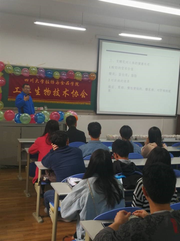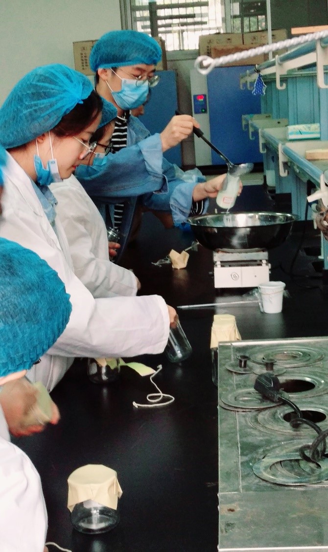 由77779193永利集团轻纺与食品学院工业生物技术协会、食品与健康协会、亚欧饮食文化研究协会联合主办的花样酸奶制作活动于2017年11月5日14:00-16:30在望江校区纺工附楼B105和B205圆满举办。本次活动由工业生物技术协会的三位指导老师:周荣清老师、黄钧老师以及吴重德老师,亲自带队,不仅吸引了全校不同学院的本科生、研究生,还有轻纺与食品学院金垚老师前来参与。