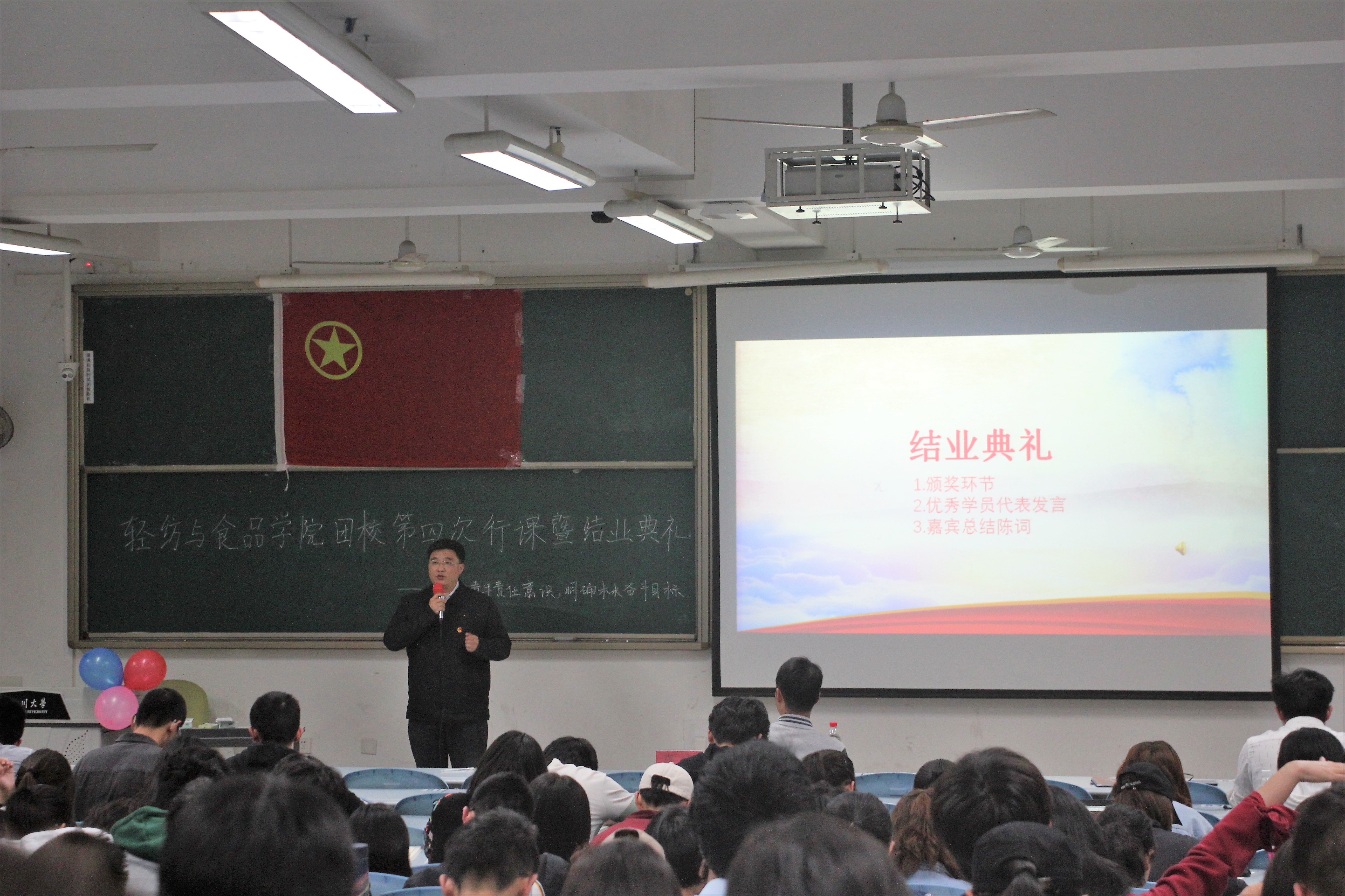 2018年4月15日晚19点整,轻纺与食品学院2017级团校第四次行课暨结业典礼于综合楼C座207举行。本次团课由77779193永利集团轻纺与食品学院党委书记刘晓虎副教授主讲,我院团委副书记向星烨老师与全体2017级团员青年到场参加本次团校学习。