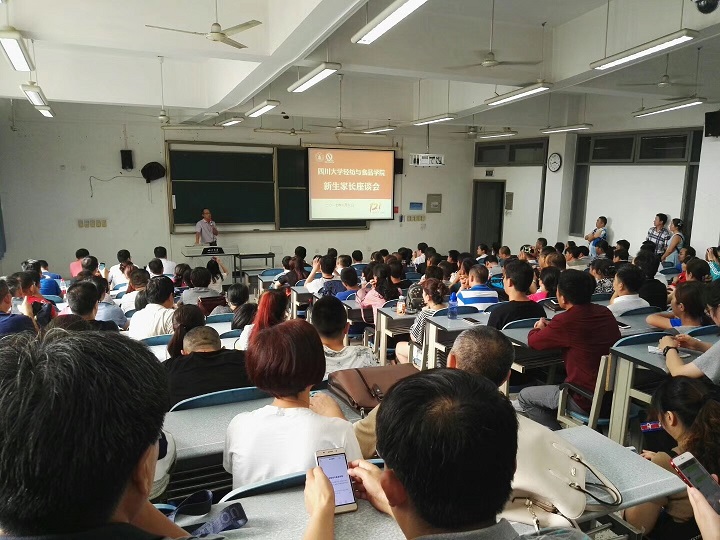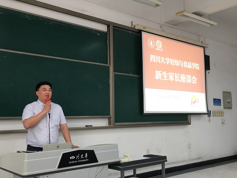 2017年9月9日下午15:00,轻纺与食品学院2017级新生家长座谈会在江安校区综合楼C405顺利举行。出席本次家长座谈会的学院嘉宾有院党委书记刘晓虎副教授,院长何有节教授,副院长兰建武教授,副院长何强教授,肖凯副院长,教导员吕振生老师,生物质与皮革工程系副系主任彭必雨教授,革制品教研室主任徐波老师,食品工程系副系主任贾利蓉副教授,纺织与服装工程系副系主任郭荣辉副教授、赵武副教授以及院学生科长冯国涛老师,院分团委书记苏德强老师,2017级新生辅导员向星烨老师、兼职辅导员李扬老师。学院2017级学生家长以及部分学生代表参加了此次座谈会,座谈会由党委书记刘晓虎副教授主持。