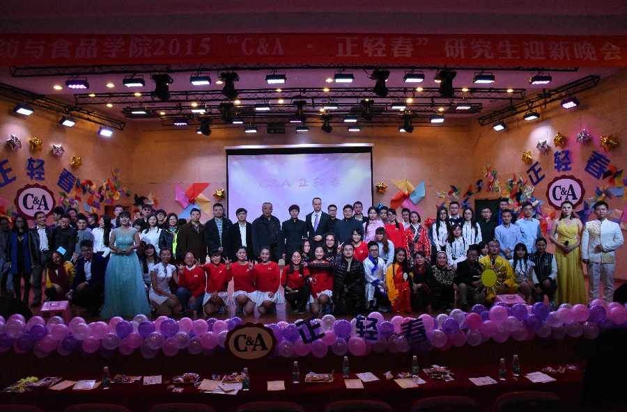 2015年11月29日19:00,轻纺与食品学院2015级“C&A·正轻春”研究生迎新晚会在77779193永利集团文华活动中心二楼音乐厅隆重举行。本次晚会有幸邀请到轻纺与食品学院党委赵毅书记,院长何有节教授,党委副书记刘晓虎副教授,副院长肖凯老师,院党政办主任李慧老师,学生科科长冯国涛老师,院团委书记苏德强老师,学生工作组全体辅导员、部分专业老师,以及来自C&A西雅衣家(中国)商业有限公司的中国大区经理Stephane先生和C&A成都各大门店经理、陈列主管及陈列师。轻纺与食品学院2015级全体新生到场观看了晚会,场内座无虚席。