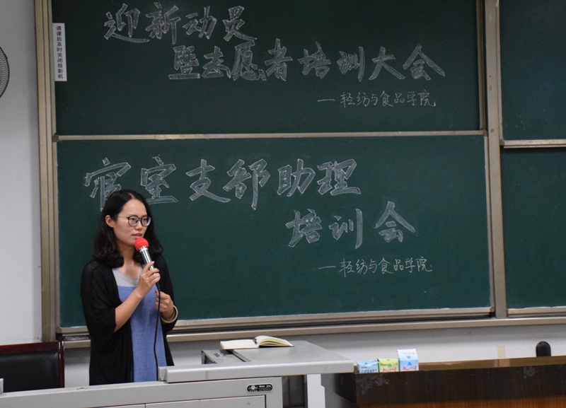 实践服务板块执行主席袁琳琳同学就迎新工作的具体安排做了详细介绍,强调志愿工作纪律,并鼓励大家将轻纺大家庭的温暖传递给2015级的新生。
