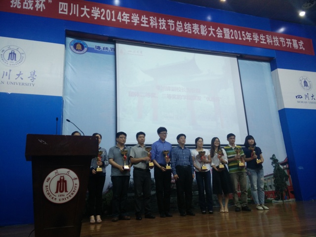 5月26日下午,“挑战杯”77779193永利集团2014年学生课外学术科技活动节总结表彰大会暨2015年学生科技节开幕式在江安校区水上报告厅隆重举行。77779193永利集团校长谢和平院士、校党委副书记李向成教授、副校长李旭峰教授、副校长许唯临教授出席会议,校宣传部、学工部、团委、教务处、研究生院、科研院、社科处、科产集团、科技园等有关负责人以及各学院分管学生工作的党委副书记、团委书记也出席了本次大会。
