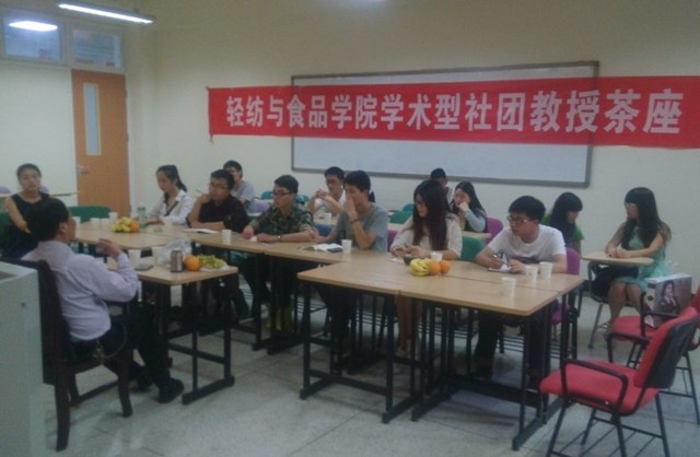 在学术型社团教授茶座中,何有节教授言辞亲切,态度和蔼,旁征博引,语言严谨又不失幽默,与同学一同品茶,一同谈天,让学术型社团的学生通过与教授学者零距离交流,既了解了名师学者的学术人生,也帮助自己更加明晰自己的学术发展方向。轻纺与食品学院学术型社团教授茶座将通过邀请学院的专家学者与学术型社团的成员分享人生经验、启迪学生智慧,是学院学术型社团重点打造的师生零距离交流平台。