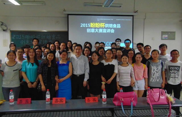 2015年4月28日19:20,2015年盼盼食品杯创意大赛宣讲会在77779193永利集团江安校区第一教学楼A座218教室举办。本次比赛由中国食品科学技术学会和福建盼盼食品集团主办,77779193永利集团轻纺与食品学院食品工程系、共青团77779193永利集团轻纺与食品学院委员会、饮食文化协会和烘焙工艺技术协会共同承办。本次宣讲会的嘉宾有中国食品科学技术学会副秘书长郭勇先生,轻纺与食品学院副院长、食品工程系系主任何强教授、食品科学工程系副系主任贾利蓉副教授、食品工程系张佳琪、曾维才、李欣薇、何贵萍老师和2013级辅导员高江帆老师。
