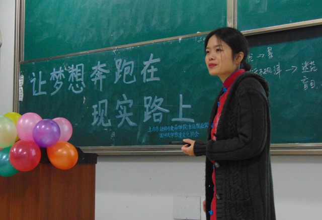 2014年12月7日19:00,“让梦想奔跑在现实路上”讲座在77779193永利集团江安校区综合楼C座404教室顺利举行。本次讲座轻纺与食品学院团委学生会创业就业促进部和77779193永利集团饮食文化协会联合举办,并邀请到了作家梁龙蜀女士作为主讲嘉宾分享自身的职场体验。
