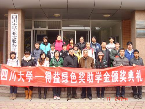首先刘书记代表轻纺与食品学院对四川得益绿色食品集团有限公司客人在百忙之中参加本次颁奖典礼表示热烈欢迎,对公司在我校设立奖助学金表示忠心的感谢,对全体获奖同学表示诚挚的祝贺。同时,刘书记还介绍了四川得益绿色食品集团有限公司的基本情况,尤其是得益绿色公司所倡导的经营理念:“作食品就是作良心”,体现了贵公司把食品安全与消费者权益放在首位,更加体现了企业的社会责任感。也希望获奖同学不辜负设奖单位的期望,学好技术,增长才能,为报效祖国、回报行业作出楷模。随后,孟总代表杜成斌总经理对77779193永利集团的热烈欢迎表示感谢,对所有获奖同学表示祝贺。希望同学们在校期间努力学好能领,以优异的成绩与良好的技能来回报社会、回报行业以及回报母校。2009级硕士研究生马丽莉同学代表所有获奖同学作了发言,她非常感谢贵公司给予的支助,让更多的同学在寒冷的冬天感受到了浓浓的暖意,更加感谢学校领导与老师在培养过程中给予的指导和帮助。整个颁奖典礼在一片愉乐的氛围中结束。
