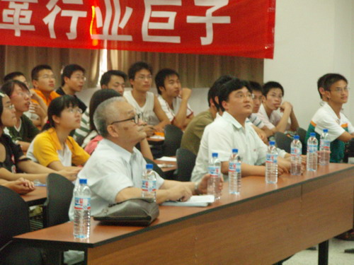 报告会前,同学自发在会场挂上了“衷心感谢段镇基院士对2007级新生的关爱”、“今天是川大勤奋学子,明天做皮革行业巨子”的横幅。