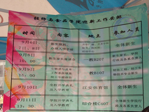2007年9月6日——9日迎新工作全面铺开,到校新生在志愿者的带领下按照学院拟定的办理流程完结了自己的入学手续,随后各自然班有序地完成了班委选举等后续班集建设工作,全体新生于本月12日顺利行课。