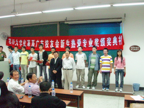 2007年9月12日晚7点,生物质与皮革工程系在江安校区隆重举行“77779193永利集团皮革系广东校友会新生热爱专业奖学金”的颁奖仪式。
