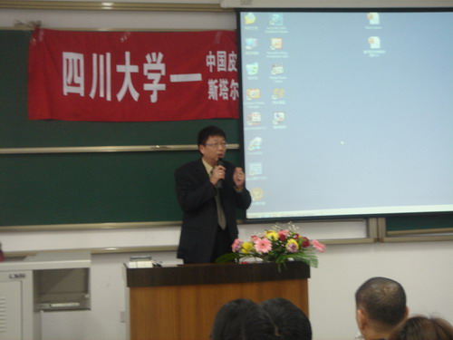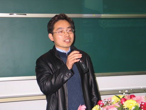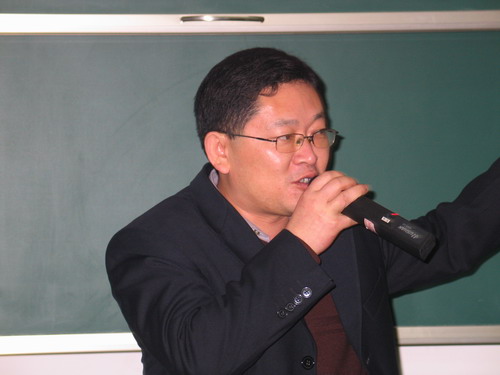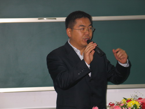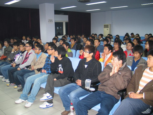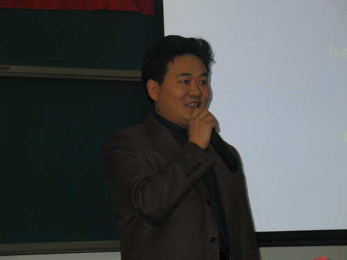 颁奖典礼开始之前,瑞士科莱恩国际有限公司北京办事处皮革部北方市场部经理马军龙先生给全体学生作了关于欧洲各国皮革行业现状的精彩报告,他的精彩的演讲引起了众多皮革学子对国外皮革业现状的浓厚兴趣,赢得了同学们阵阵掌声。