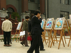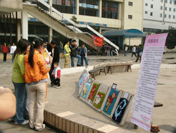 我院2003级纺织工程于23日、3月30日分别在望江校区西区活动中心和行政楼前展出了上学期末完成的编织装饰挂毯习作,获得了广大师生的关注和好评。