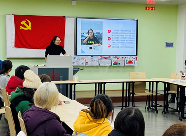 接着,何玉敏同志向大家播放了电子影集,带领全体同志回顾了庆祝建国70周年升旗仪式以及《我和我的祖国》观影活动、不忘初心寒冬送温暖、自检自省联系群众、冬日温情助力考研等精彩瞬间。