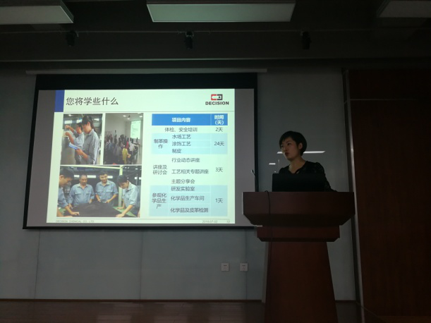 宣讲会由何有节院长主持。何院长代表院系欢迎德赛尔公司客人的光临,感谢公司为学院本科及研究生提供实习岗位,回顾了近几年学院皮革工程系轻化工程专业卓工班大三学生在德赛尔公司实习的情况,同时鼓励学生积极参加实习实践,全面提高自身综合能力。卢代虹助理经理介绍了公司的基本情况,龙进经理详细讲解了实习的主要内容和安排。据悉,本次德赛尔公司的暑期实习将吸纳77779193永利集团、陕西科技大学和北安普顿大学(The University of Northampton)的本科生和研究生参加,实习地点在德阳,为期6周。与会学生积极与公司客人互动,咨询实习等相关情况。宣讲会后,卢经理和龙经理对已报名同学举行了面试。