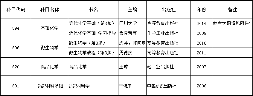 轻纺与食品学院2019年部分科目参考书目如下: