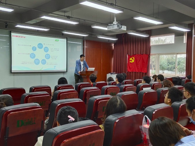 叶波同学首先根据自己的就业经历,对2020年就业形势进行分析,尤其是在疫情背景下,就业形势较去年更严峻,竞争进一步增大。他建议同学们根据自己当下情况,提前做准备、找准方向,切勿盲目,同时应该找伙伴并肩前行,信息共享、调整心态等。同时再协助同学们熟悉求职流程并传授面试技巧,包括简历排版、举止谈吐及就业后需注意的事项,并结合自己的就业经历,帮助同学们解决就业迷惑、准确找到自己方向。