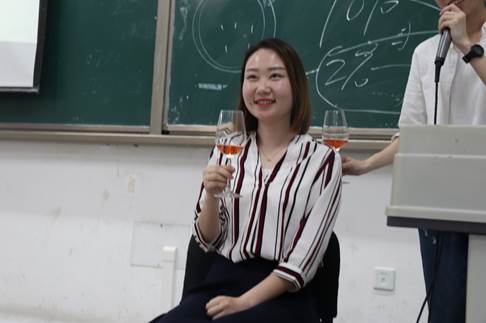 19:30,活动正式开始,本次活动特别邀请到轻纺与食品学院罗爱民老师,酒文化协会全体同学参加了此次活动。首先,罗爱民老师就酒文化做一个分享。讲解酒在身体里的代谢过程,教同学们如何在饮酒时的注意事项,能够更好的享受感受酒的魅力,同学认真聆听,在台下积极回答罗老师所问问题,罗老师讲解酒文化很有激情,同学们都被带动起来现场的气氛越来越活跃起来,同学们都对酒文化都充满了兴趣。在罗老师分享结束,张文宇学姐做一个关于葡萄酒的分享。葡萄酒作为如今聚会等场合不可缺少的酒,其中的礼仪更是重要,现场的工作人员给同学们倒酒,在学姐的讲解下品鉴葡萄酒。首先是怎样拿酒杯,再是喝酒之前先要闻,再分别对桃红葡萄酒、干红葡萄酒的口感和礼仪做介绍,让同学们有一个更好的体验。张文宇学姐,讲述方式幽默风趣,以自己亲身经历讲述,将现场的气氛推向高潮,同学们都拿起酒杯跟着学姐的讲解学习葡萄酒礼仪。
